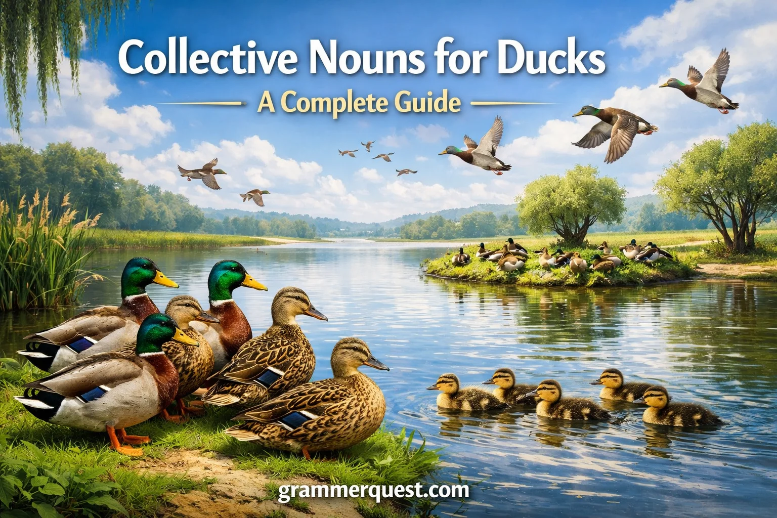 Collective Nouns for Ducks: A Complete Guide shows how ducks are social, noisy birds living in groups, often seen swimming, waddling, and floating together on water.