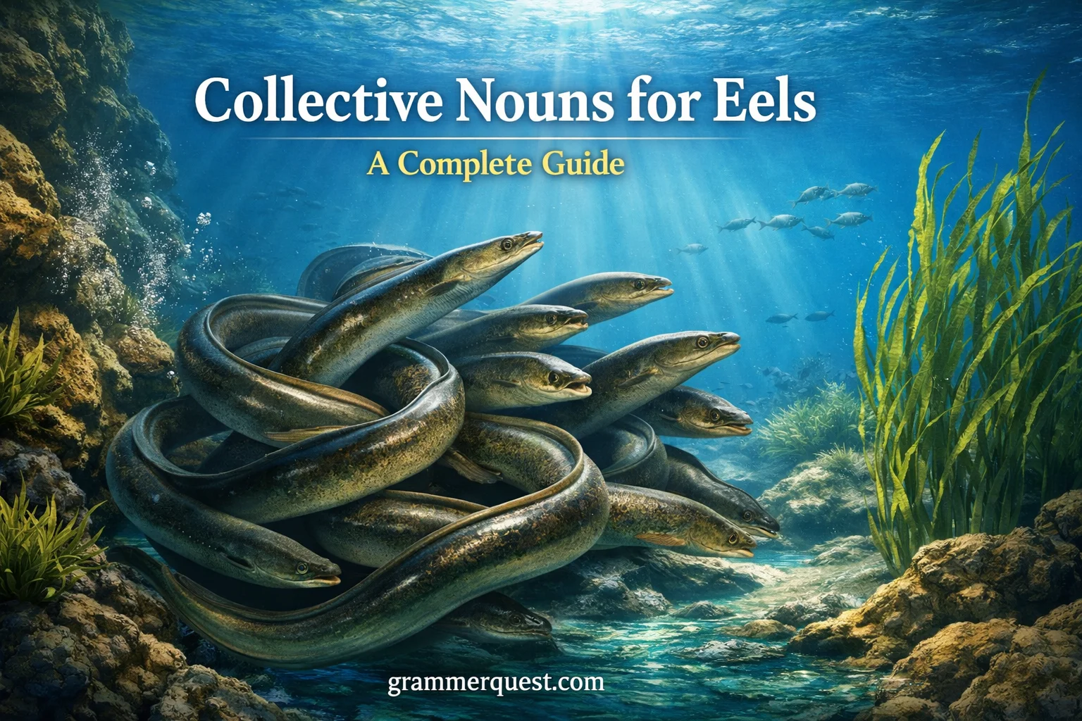 Collective Nouns for Eels: A Complete Guide is about group, favourite, sea, creatures like eels, where we wonder, discover fascinating, names and species in a simple and clear way for better learning.