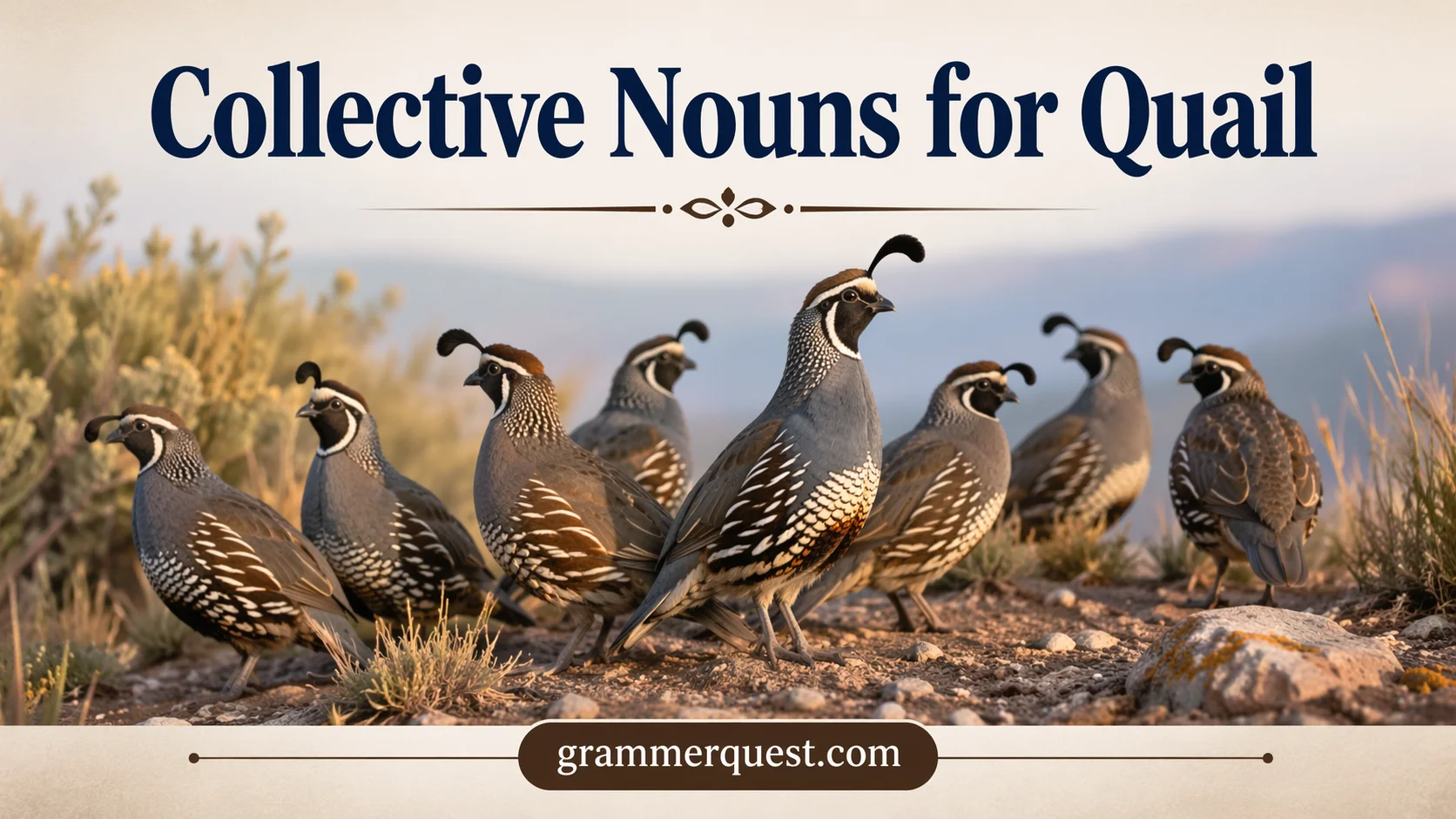 Collective Nouns for Quail show how birds, animals, and their groups are named in the English language. From medieval sources to modern usage, these words evolved over history with changing accuracy and meaning. Some terms like flock are common, while others remain rare or doubtful. Overall, collective nouns make learning about nature more interesting and help us better understand how humans describe animal behavior.